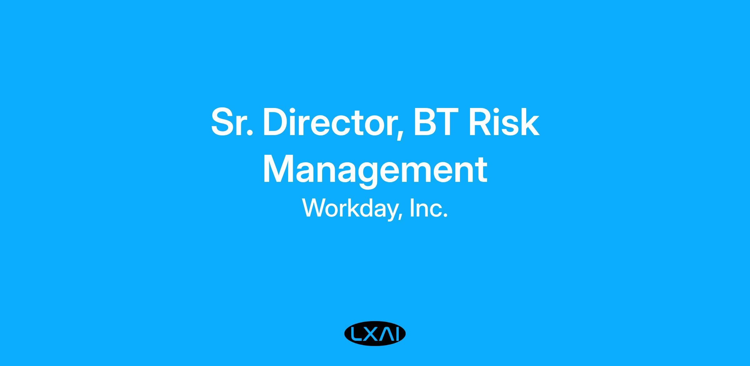 The Sr. Director of BT Risk Management is a critical, new leadership role responsible for establishing and maturing a comprehensive risk management program within Workday's Business Technology (BT) organization. This role is a cornerstone of the larger BT Transformation initiative, aiming to drive consistency, clarity, and efficiency. You will report to the VP, BT Strategy & Operations and be a core member of the leadership team. The primary mission is to evolve BT from a reactive to a proactive and strategic risk-aware organization. This will be achieved by clarifying roles and responsibilities, creating a standardized framework, and improving the visibility of operational risks across the enterprise.